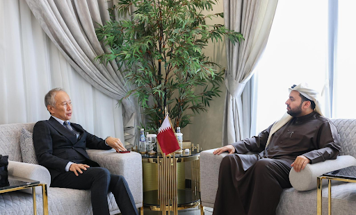 Al Khulaifi, Japanese Envoy Call for Full Implementation of Gaza Ceasefire